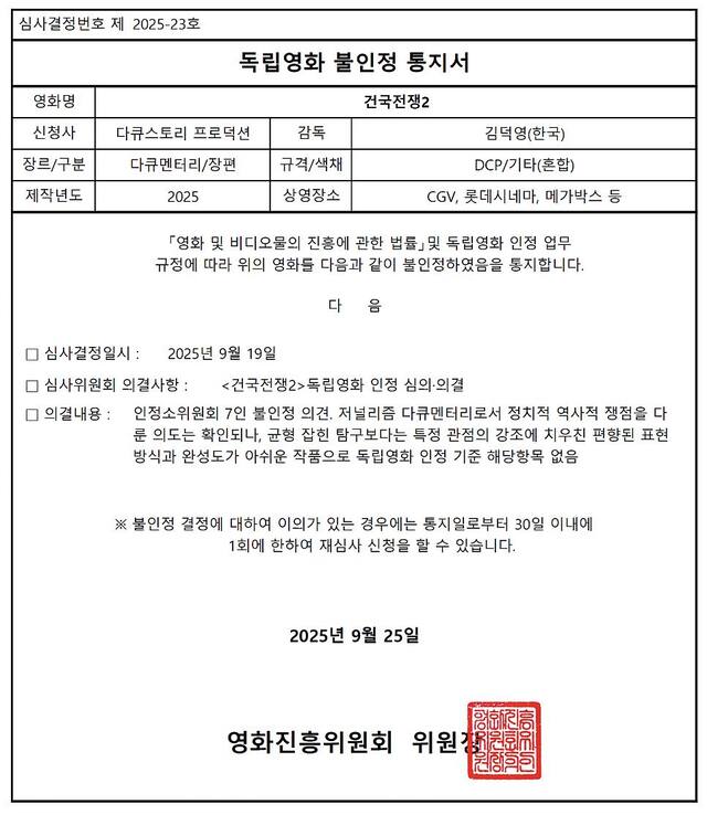 ¿µÈ °Ç±¹ÀüÀï2ÀÇ µ¶¸³¿µÈ ºÒÀÎÁ¤ ÅëÁö¼.(»çÁø=±è´ö¿µ °¨µ¶ SNS)¹®Á¦´Â °°Àº ±âÁØÀÌ ´Ù¸¥ ÀÛǰµé¿¡´Â Àû¿ëµÇÁö ¾Ê¾Ò´Ù´Â Á¡ÀÌ´Ù. °ú°Å ¹Ú±ÙÇý Àü ´ëÅë·É ´ç¼±°ú ¡®ºÎÁ¤¼±°Å¡¯ ÀÇȤÀ» ¿¬°áÁöÀº ´ÙÅ¥ ¡®´õ Ç÷£¡¯(±è¾îÁØ Á¦ÀÛ)Àº °´°üÀû °ËÁõÀÌ ºÎÁ·ÇÏ´Ù´Â ÁöÀû¿¡µµ µ¶¸³¿µÈ ÀÎÁ¤À» ¹Þ¾Ò´Ù.